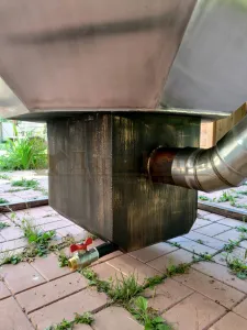 Банный чан на подставке изготовлен из пищевой стали. Представляет собой большую ёмкость в виде чаши, при нагревании которой можно париться на свежем воздухе. Чан установлен на устойчивую металлическую подставку и оборудован кедровым бортом, скамейками, подспинниками, трапом для ног и приставной лестницей. Нагревание банного чана происходит от обычного костра. Если оборудовать данную модель печью, то банные процедуры можно принимать даже зимой.