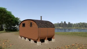 Мобильная баня-бочка с каждым днем набирает все большую популярность благодаря её возможной транспортировки куда угодно: на отдых в лесу, на рыбалку или на побережье реки