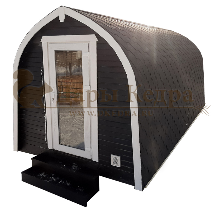 Утеплённый зимний кемпинг-дом «Панорама» с боковым входом Это утепленный домик прямоугольной формы с панорамным окном и двумя помещениями: жилой комнатой и санузлом с душевой зоной. Может быть изготовлен по готовым стандартам или вашим индивидуальным размерам. Современные материалы, используемые при проектировании, отличаются экологичностью и прочностью. Теплоизоляция стен, пола, потолка выполнена с помощью минеральной ваты, экологичной и устойчивой к поражениям насекомых. Для исключения воздействия неблагоприятных факторов внешней среды снаружи используются гидро- и ветрозащитные пленки. Финишным укрывным материалом стен является сайдинг, имитирующий брус или кирпич.