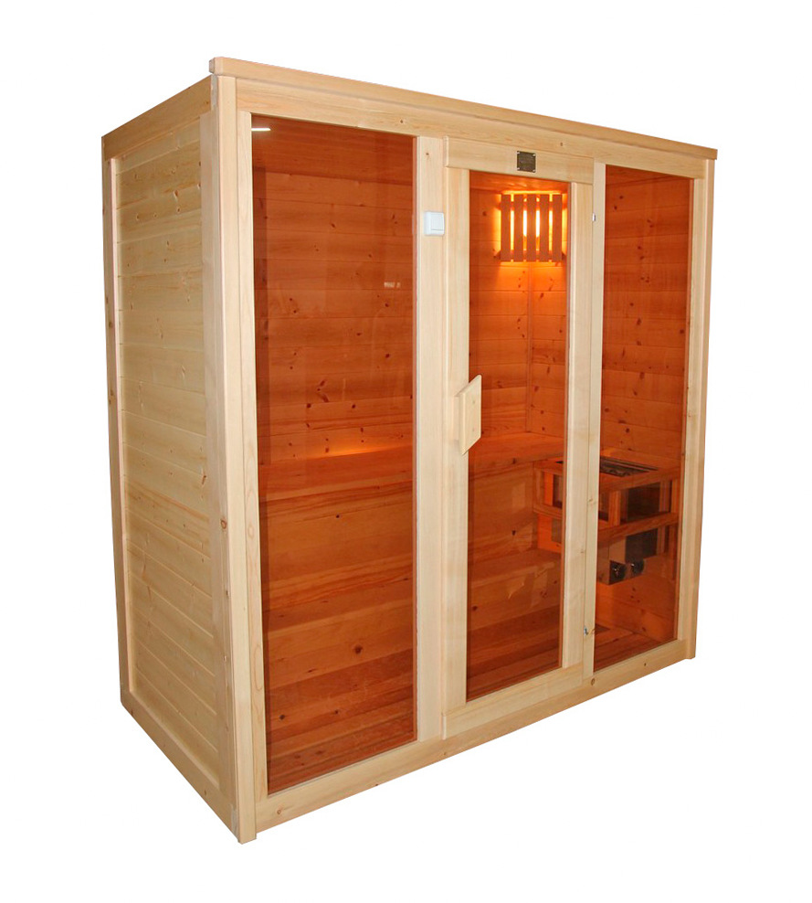 Одноместная финская сауна кабина из кедра и липы с электрокаменкой Это специально оборудованная готовая деревянная кабина для сухого и влажного парения. Электропечь нагревает пространство внутри и позволяет сбрызгивать камни водой, слегка увлажняя воздух. Такая процедура позволяет избежать перегрева. Сауна обшита снаружи и внутри вагонкой из липы и имеет теплоизоляционный слой. Финская сауна с электропечью подойдет, как для домашнего использования, так и для коммерции. Доставляется в разборном виде щитами, собирается по инструкции с помощью шуруповёрта. Обращаем Ваше внимание, что в стоимость сауны уже включена дверь с закаленным стеклом в раме из кедра с фиксатором и деревянным фасадом справа. Вы можете заменить фасад на цельностеклянный с безрамной дверью за дополнительную плату