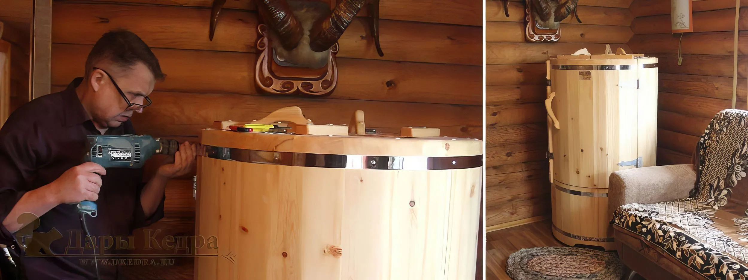 Кедровая бочка (фитобочка) круглая со скосом «Двухрежимная Профессиональная»