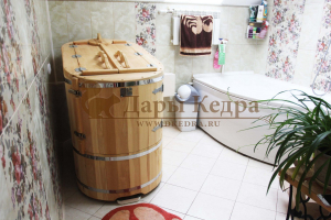 Кедровая фитобочка полулежачая - это мини парная, которую можно использовать не только в спа-салонах, но и дома. Модель этой бочки наиболее комфортна, так как позволяет принимать процедуры полулежа. Толщина стенок составляет 25 мм. Фитобочка оборудована откидными створками, дверцей и отверстием для головы. Во время парения человек находится внутри кедровой бочки, а голова снаружи. Благодаря этому исключается возможность перегрева. Подлокотники, подспинник из кедра и внутренние ручки делают эксплуатацию фитобочки более удобной.