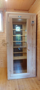 Это специально оборудованная кабина из липы для прогрева тела человека сухим теплом. Воздух в таких парных не нагревается. Инфракрасные лучи воздействуют на тело, равномерно прогревая мышцы, суставы и органы. Карбоновые излучатели, встроенные в стены кабины, обладают мягким прогревом, что полностью исключает возможность ожога. Работает кабина за счет электричества. Компактная одноместная инфракрасная сауна с карбоновыми излучателями подойдет как для домашнего использования, так и для коммерции.