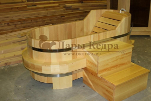 Деревянная ванна из кедра создаст уютную атмосферу в вашей ванной комнате, бане или спа-салоне. При взаимодействии кедра с водой активируются эфирные масла и фитонциды, что делает принятие ванны не только приятным, но и полезным. Перепад высоты и подспинник обеспечивают комфортное положение тела во время водных процедур. При правильном уходе срок службы изделия более 20 лет.